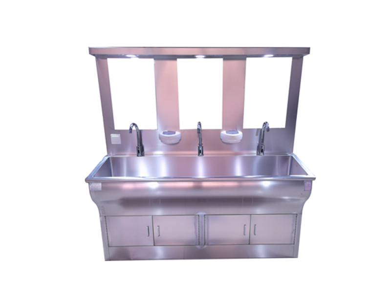 不銹鋼潔凈洗手池分為一人位、雙人位、三人位、四人位等,可根據(jù)客戶要求定制。無塵室不銹鋼洗手池、洗手槽采用SUS304不銹鋼制作,中間特殊靜音處理。槽身以人體工程學設(shè)計洗手時水花不易濺到身上。鵝頸型水龍頭,光控感應式出水,可靠。配紅外線感應給皂液裝置,醫(yī)用洗手池可選裝自帶40L美的電熱水器,自由設(shè)定出水溫度,一年四季可提供恒溫水,水龍頭感應自動出水,每個洗手位帶獨立鏡燈和鏡子,洗手槽采用特制的坡度設(shè)計,可有效防止水濺到洗手池外,各水嘴獨立設(shè)置,不影響其它水嘴的使用。