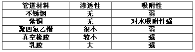 不同材料的管道對(duì)氣體和水的滲透、吸附能力見表10。