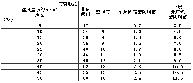 單位長度縫隙滲漏空氣量用公式計算是比較困難的,一般是通過不同形式的門、窗進行多次試驗的數據統(tǒng)計后得出的。表7是對國內潔凈室的20多種常用的門、窗在實驗室進行了大量的試驗后取得的數據,雖然近年來潔凈室門窗的材料和形式有很大的發(fā)展,但目前還有部分潔凈室仍然采用鋼制密封門窗,故表7中的數據仍可供設計時參考。