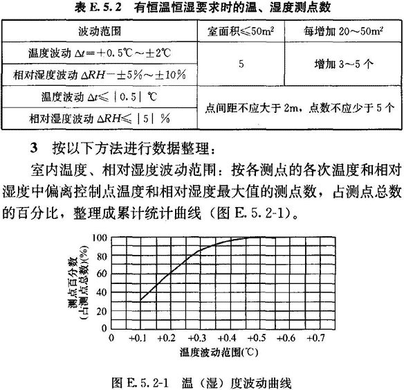 E.5.2 有恒溫恒濕要求房間的溫濕度檢測(cè)應(yīng)符合下列要求: