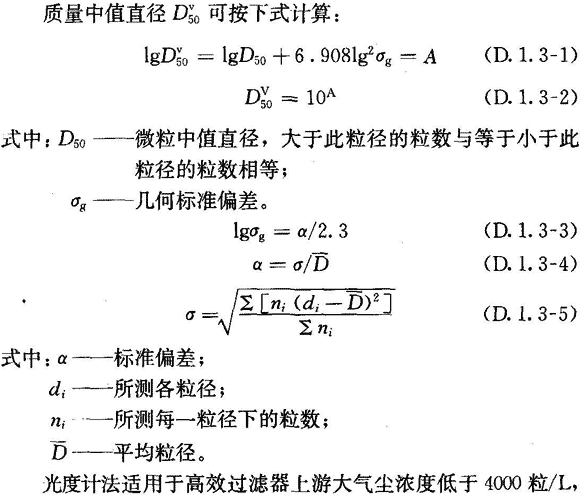 D.1.3 光度計法可用于最大穿透率大于等于0.001%的過濾器檢漏,應(yīng)采用多分散的檢漏氣溶膠,其質(zhì)量中值直徑為0.5μm~0.7μm,幾何標準偏差約為1.7。