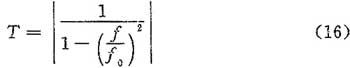 由式(16)可以看出,當(dāng)f/f0趨近于0時(shí),振動(dòng)傳遞率接近于1,此時(shí)隔振器不起隔振作用;當(dāng)f=f0時(shí),傳遞率趨于無(wú)窮大,表示系統(tǒng)發(fā)生共振,這時(shí)不僅沒(méi)有隔振作用,反而使系統(tǒng)的振動(dòng)急劇增加,這是隔振設(shè)計(jì)必須避免的;只有當(dāng)f/f0>